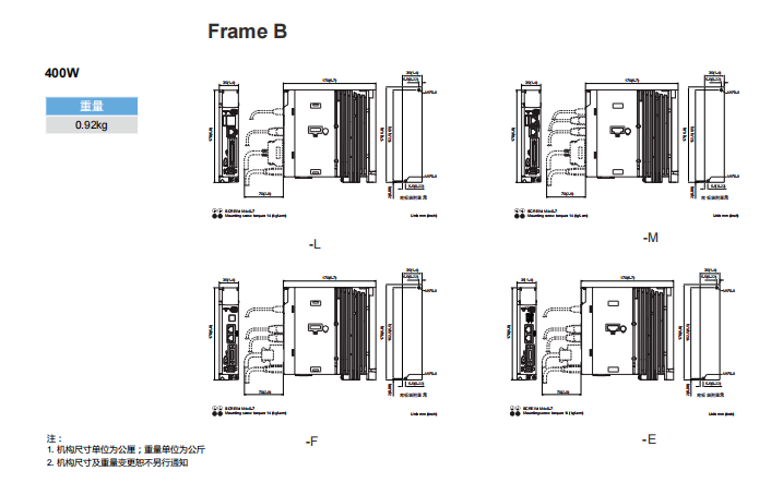 注:伺服電機(jī)型號(hào)中的②為編碼器型式